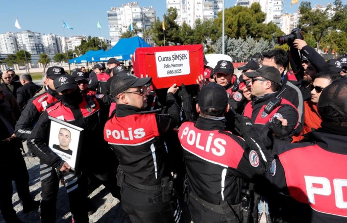 Antalya'da dün geçirdiği trafik kazasında olay yerinde hayatını kaybeden polis memuru Cuma Şimşek, Antalya Emniyet Müdürlüğü'nde düzenlenen törenle birlikte görev yaptığı meslektaşlarının omuzlarında son yolculuğuna uğurlandı.