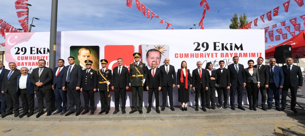 Tebrikatların ardından İstasyon Meydanı’nda 29 Ekim Cumhuriyet Bayramı kutlama programı düzenlendi. Gaziantep Valisi Kemal Çeber, Büyükşehir Belediye Başkan Vekili Hakan Aslansoy ve Garnizon Komutanı Tümgeneral Osman Aytaç, tören alanında yer alan birlikleri selamlayarak kutlama programını başlattı. Saygı duruşu ve İstiklal Marşı'nın okunmasıyla devam eden törende Vali Çeber, Cumhuriyet'in anlam ve önemine dair bir konuşma yaptı.