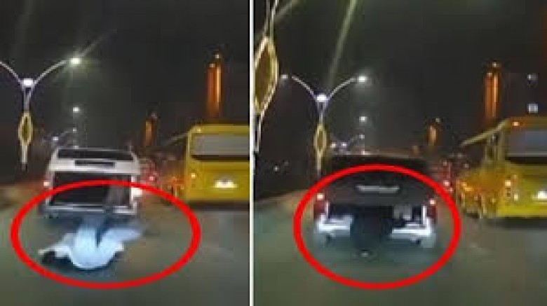 Seyir halindeki aracın bagajından düştü, ölümden kıl payı kurtuldu