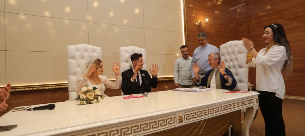 Şahinbey İlçesi’nde yaşayan işitme engelli çift Şahinbey Belediye Başkanı Mehmet Tahmazoğlu’nun kıydığı nikâhla mutluluğa evet dediler.